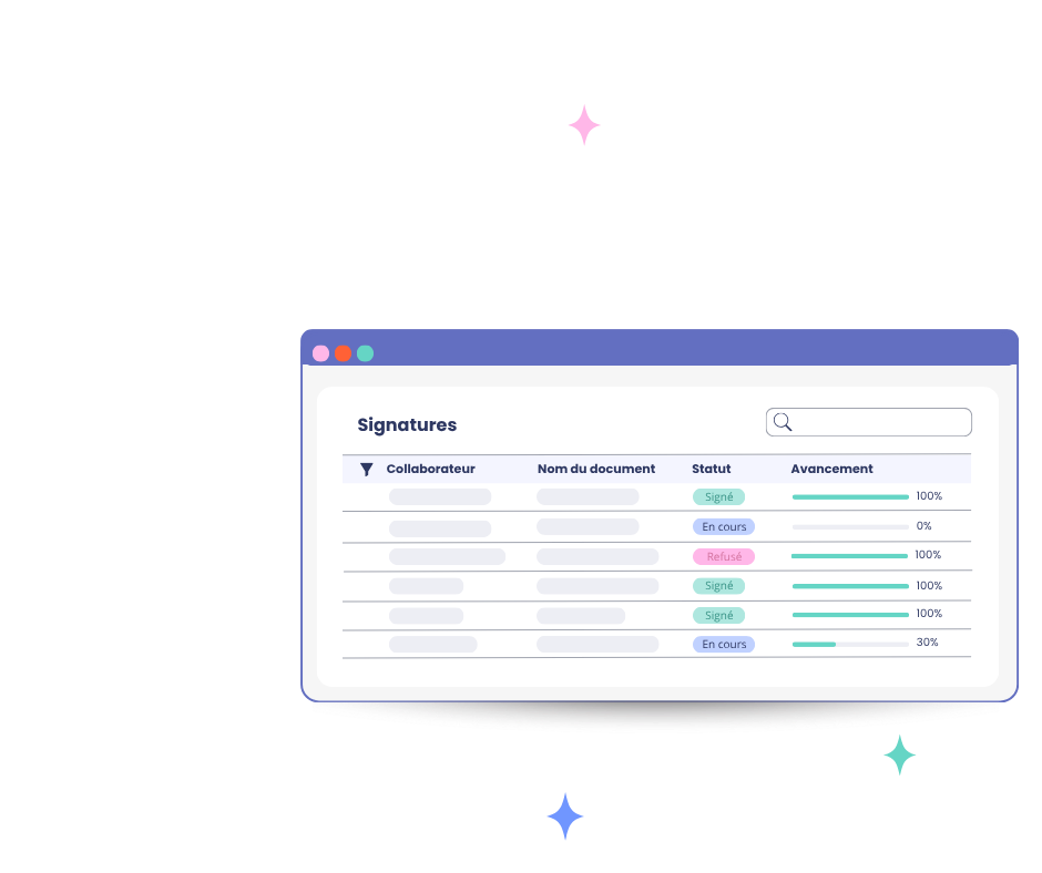 Enfin, suivez l’avancement de vos signatures en temps réel depuis un tableau de bord dédié, sans aucune relance manuelle.